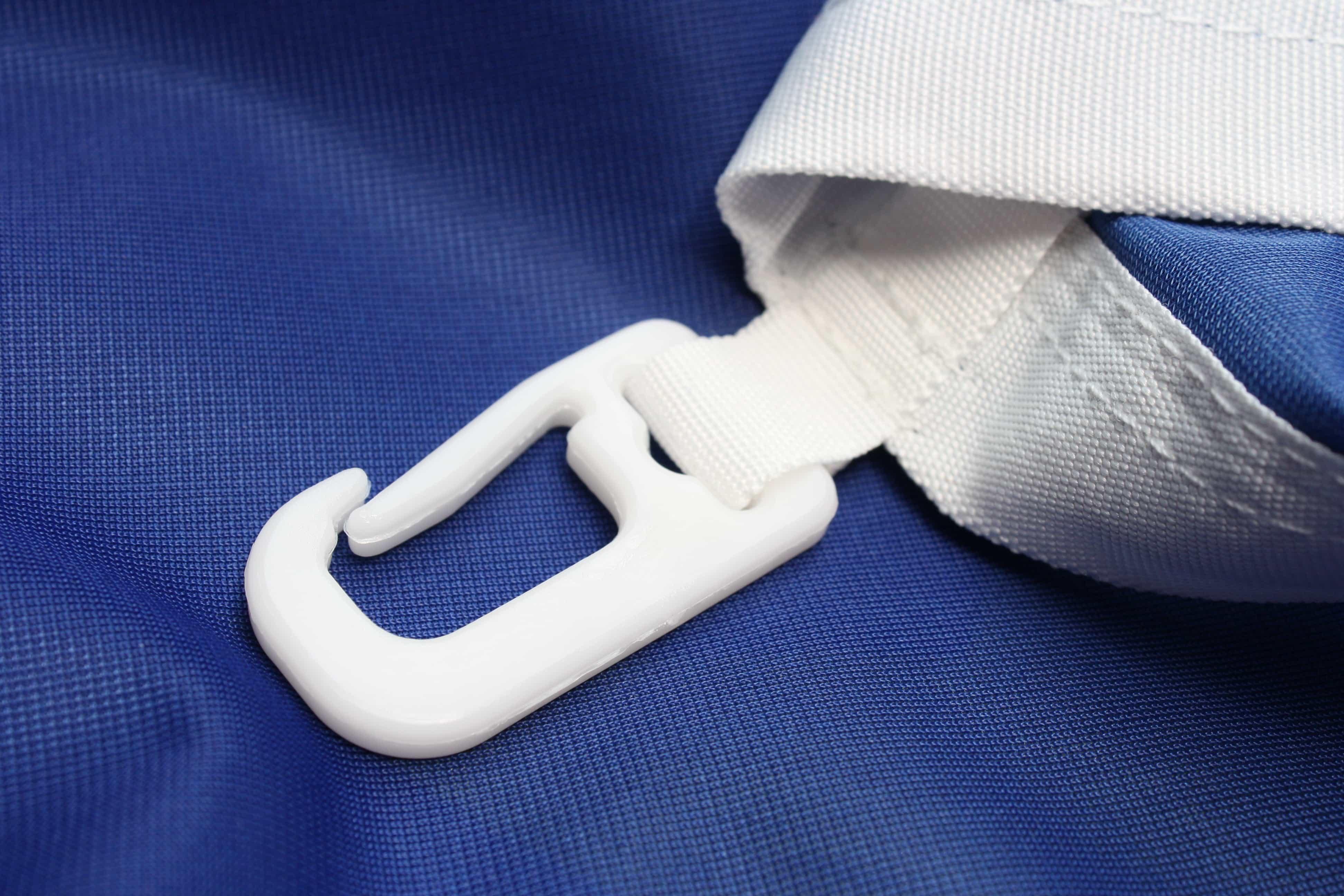 Dabei ist es uns egal ob Du wie üblich Karabiner-Haken verwendest oder gerne Metallösen nutzt.